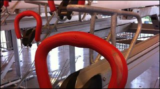 Hier kunnen fietsen boven elkaar worden opgeslagen zodat de opslag verdubbelt.